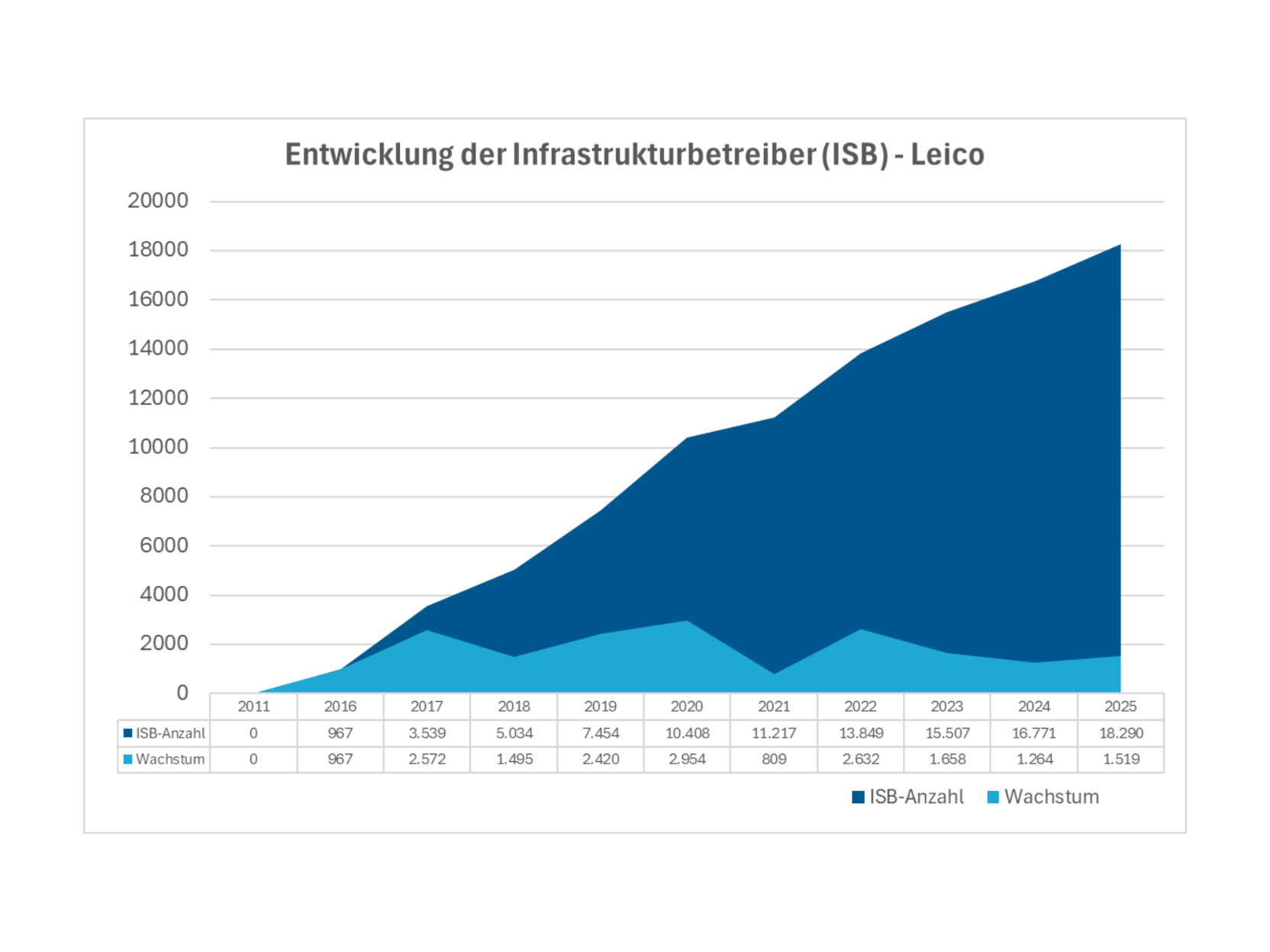 Bei der Planung und vor Beginn von Tiefbauarbeiten ist die Einholung von Leitungsauskünften bei allen relevanten Netz- und Infrastrukturbetreibern unerlässlich. Leico – Leitungs-Check-Online unterstützt Sie dabei effizient und zuverlässig. Mit über 18.600 hinterlegten Infrastrukturbetreibern (ISB) aus allen Energie-, Versorgungs- und Entsorgungssparten bietet Leico die größte deutschlandweite Abdeckung.